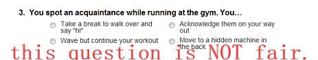 So I decided to take this dumb spam quiz manners test. But I knew I would have to be honest and not just click the things that I knew were the right answers I am inappropriate not stupid I could get a good score. But in the interest of science I did the right thing.
