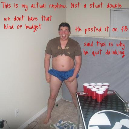 Before anyone freaks, he is over 21, he was in college, he did not drive, and this photo was not taken by me, cause ewww… my 1 big question, WTH did he find 80’s shorts? He posted this on FB which in my book makes him fairgame. He also posted this is the last time he drinks, which to mean is some sort of therapy, so I am just helping him, really… stop laughing, I am serious.