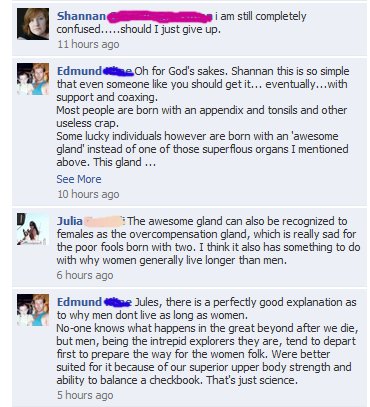 […] My friends on face book again take the stage without even realizing they will become fodder for my blog.  To summarize apparently my friend Ed has 2 awesome glands. […]