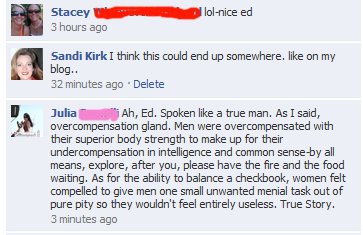 The following events took place on my friends facebook wall…  Some of the names have been blurred to protect their NON innocence…