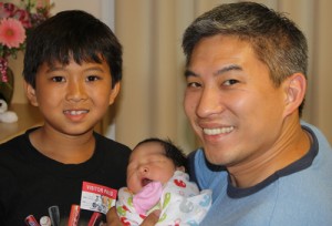 Jim Lin with his son and new daughter