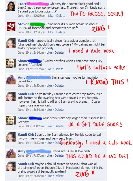 advice, diets, face book, friends, pictures, status, zombie rules, zombie spider bites