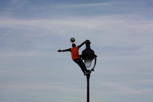 In the first picture you are obviously having the time of your life at the Eiffel Tower. You were able to talk the security guards into letting you climb out onto the antenna.