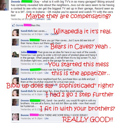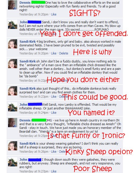 […] This post was mentioned on Twitter by WeaselMomma, ThePeachy1. ThePeachy1 said: Todays Post- fun with facebook- mancaves, blow up dolls, amish, sheep and donkeys. dont miss it. http://bit.ly/auLJIv […]