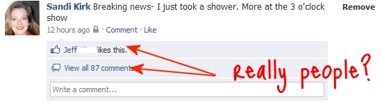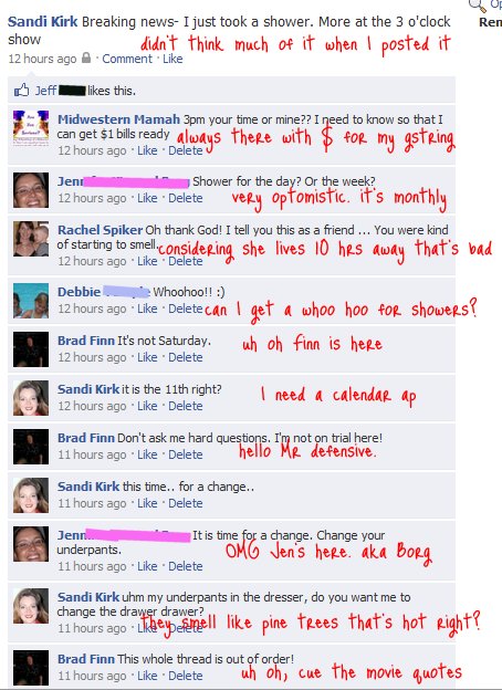 […] facebook friends are awesome. If you have been around a while you will remember the great 100+ person shower status message or my cat suing me . Those were really the golden […]