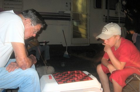 I want to thank you for all you did like driving the motor home there and back for me and helping grandma with all the chores. Also like to thank my son-in-law Lloyd for his assistance, in fact he and our camping neighbor did all the required chores in setting up and getting us ready to depart. I thank each of them, Also want to thank my grandson for lesson he gave me in our checker games, He beat me until my ears flop like molasses on a very cold day, but I enjoyed every minute of it.