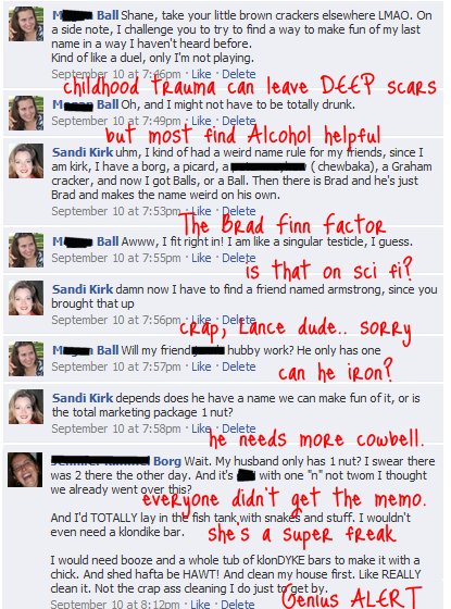 as I wrote that I KNEW one of you would say something like that LOL. you know your quality, total quality, the “I’m not worthy of your air” type quality. but I actually got accused of scripting our facebook fun, ( which you know I am way to lazy to do). Plus where the hell would I find people willing to create facebook accounts friend me and then comment on threads? You can’t script the kind of insanity that takes place on my facebook. YOU young lady have been missing lately.. Glad to see you around? Hows W-man?