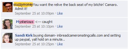 cameros, back seat sex, being peachy, fun with face book, friends, family