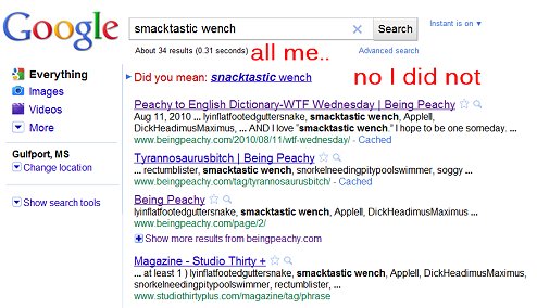 I don’t know I haven’t looked that up. I use smacktastic wench often so I am sure I am there, but snacktastic probably not so much. Feel free to send in your own google finds.. they are hilarious