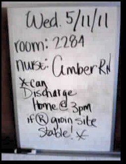 Except it wasn’t good. I was awake in the Cath lab, it sucked. I told them I was awake and they heard me and ignored me, they ignored me while they prepped me, they ignored me while I repeated things they said and I got louder.  They ignored me right up to the point I lifted my leg and screamed and then inappropriately grabbed the cute little Dr.  Then they knocked me out and I woke up back in my hospital room getting an extremely thorough heart ultrasound, which I don’t understand why I would need AFTER a heart cath but whatever.   This is the sign I saw when my eyes opened.