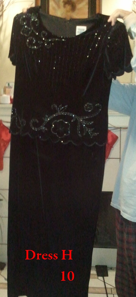this gown is full detail and loaded with both shimmer and monotone top to bottom hand sewn, it is very heavy, and has a flat underslip. Floor length, black