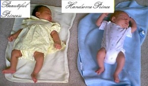 The new baby prince and new baby princess were always together, and the beautiful princess was not only beautiful but smart !   The Princess rolled over first.  The princess crawled first.  If the prince had a bottle, the princess would take it away and he would quietly accept his fate. Because after all only a fool would try to argue with a smart beautiful princess.